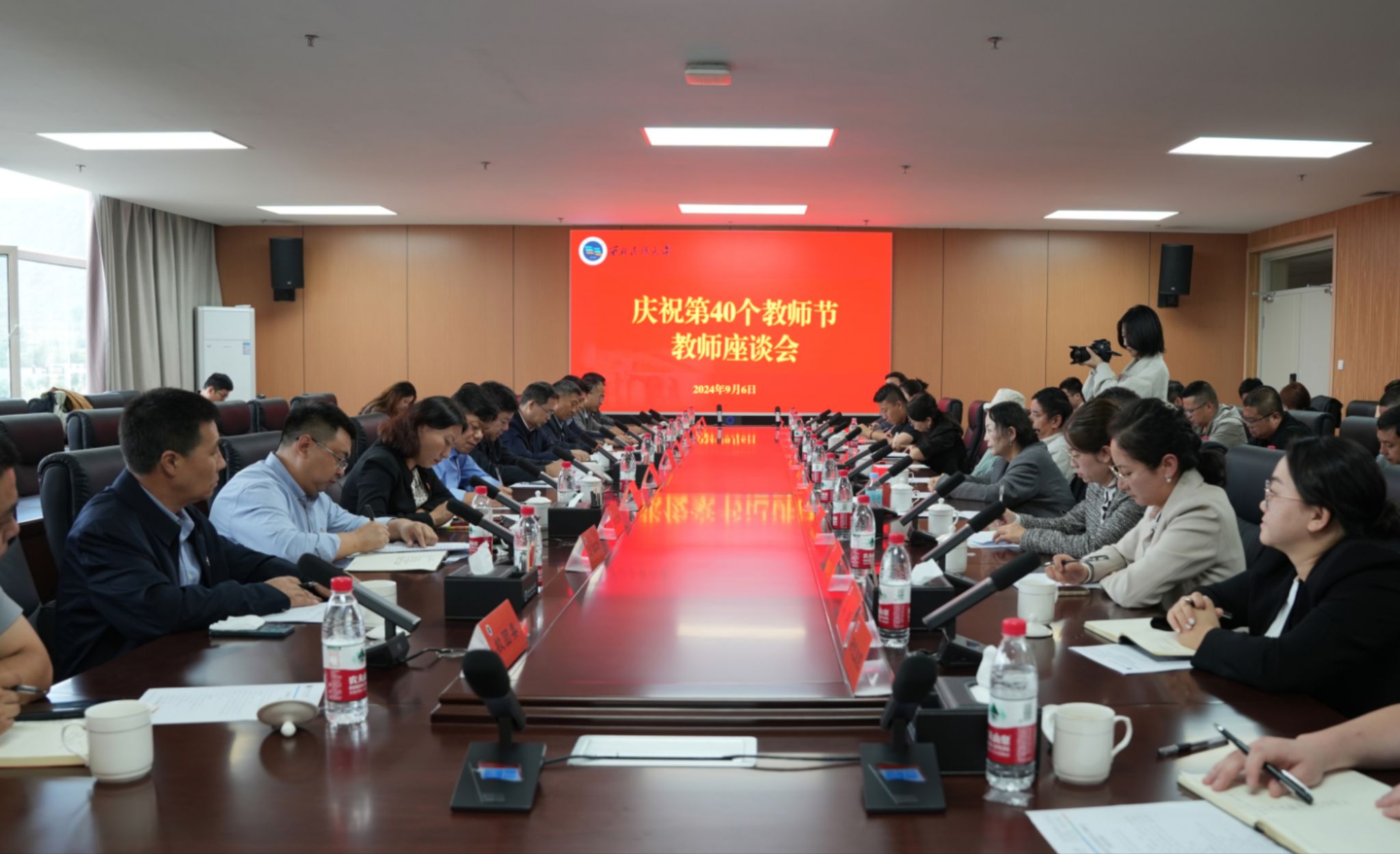 96日下午,学校在榆中校区召开以“大力弘扬教育家精神,加快建设教育强国”为主题的庆祝第40个教师节座谈会,校党委书记张俊豪出席会议并讲话。会议由校党委副书记石迎春主持。